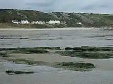 It is reached from the nearby village of Horton via a steep hill, and has a car park sited a few minutes' walk away. Despite its accessibility and its popularity with surfers, the beach is usually very quiet and it has sand even at high tide.