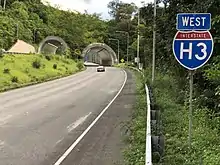 The Hospital Rock Tunnels are a small pair of highway tunnels passing through a ridge on the edge of the Ko‘olau Range on the island of O‘ahu, Hawaiʻi, USA. The tunnels are located on Interstate H-3, which connects Kaneohe with Interstate H-1 at Hālawa near Pearl Harbor, and are 354 feet (108 m) long Kaneohe bound and 353 feet (108 m) long Halawa bound. The tunnels are "cut and cover" tunnels.[1]