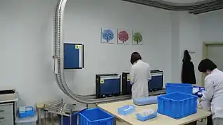 Hospital pharmacies may provide a huge quantity of medications per day which is allocated to the wards and to intensive care units according to a patient's medication schedule. Larger hospitals may use automated transport systems to aid in the efficient distribution of medications.