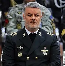 Hossein Khanzadi (Persian: حسین خانزادی) is an Iranian hovercraft pilot in the regular military (Artesh) who served as the Commander of the Islamic Republic of Iran Navy from November 2017 to August 2021.[2] On 17 August 2021, Rear Admiral Khanzadi was replaced by Shahram Irani, the first Sunni high ranking commander on the orders of the Supreme Leader Ayatollah Sayed Ali Khamenei.[3]
