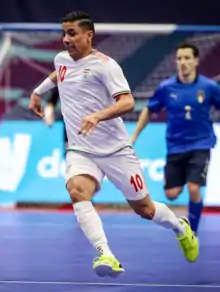 Hossein Tayyebi Bidgoli (Persian: حسین طیبی بیدگلی, born 29 September 1988) is an Iranian professional futsal player who plays for Portuguese club Benfica and the Iran national futsal team.[2] His first match with Iran was in 2009 at the age of 20. He was ranked Top Goalscorer at the 2014 (15)[3] and 2018 AFC Futsal Championship (14),[4] and 5th Best Player in the World at the UMBRO Futsal Awards in 2017 and 2018.[5]
