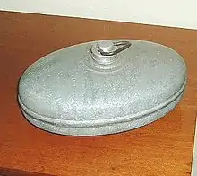 Prior to the invention of rubber that could withstand sufficient heat, these early hot-water bottles were made of a variety of materials, such as zinc, copper,[1] brass,[2] glass,[3] earthenware[4][3][5] or wood. To prevent burning, the metal hot water flasks were wrapped in a soft cloth bag.