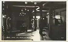 The hotel was a $100,000 guest resort that had steam heat, electric lights, private baths at four or five dollars per day. The hotel set the standard for elegance in the Yosemite area.[4] The hotel was a four-hour ride from Merced via a railway coach.[5] The new hotel replaced a number of tents that had been the first lodging for passengers. When passengers arrived at the terminus at El Portal in the late afternoon, they spent the night at the Del Portal Hotel, then left to Yosemite Valley after breakfast the next morning.[4]