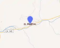 Work on a four-story Hotel Del Portal began in the fall of 1907[1] and completed in 1908 by a subsidiary corporation of the Yosemite Valley Railroad. It was located at El Portal, California in Mariposa County, 11.5 miles (19 km) west-southwest of Yosemite Village,[2] at an elevation of 1,939 feet (591 m);[3] on the western boundary of Yosemite National Park.
