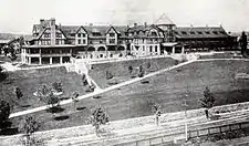 The original structure of the Hotel Roanoke was built in 1882 by the Norfolk and Western Railway (now part of the Norfolk Southern Railway), which had recently constructed its administrative offices in the city, bringing in over a thousand railroad workers. The hotel was designed by Philadelphia architect George T. Pearson in the Tudor Revival style and officially opened on Christmas Day, 1882. A new main wing was added on the western side in 1890, replacing the central portion of the 1882 structure.[3]