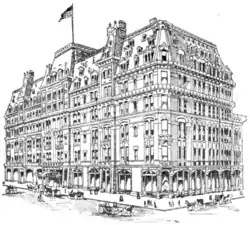 Hotel Victoria was built by Paran Stevens in 1877 in Manhattan, New York City, New York.[1] Occupying the entire block on 27th Street, Broadway and Fifth Avenue, it was the only hotel in the city with entrances on both the latter thoroughfares. The hotel was owned by the American Hotel Victoria Company. George W. Sweeney served as president and Angus Gordon was manager. In 1911, it was announced that the hotel had been redecorated, renovated, and refurnished at a cost of $250,000. Room options included without bath, with bath, and suites with rates ranging between $1.50 and $6.00 per day.[2] Accommodations were available for 500 guests.[3]