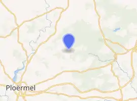 This megalithic construction is located south-west of the Paimpont forest. It is possible to reach it by passing through the village of Beauvais, heading towards the Rauco moor. It appears after the last houses of La Guette, overlooking the Val sans retour, on a hill at a height of approximately 191 metres (627 ft).[3]