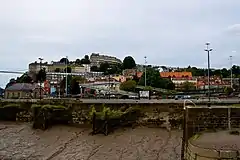 ![]() The western part of Hotwells, with the bank of the River Avon and the A4 Hotwell Road in the foreground and the higher houses of Clifton Village above. The Clifton Suspension Bridge is just visible on the left. | |