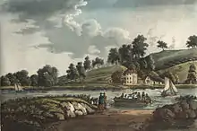 The physician Alexander Sutherland, published a summary account of the qualities of Hotwells water in 1773, typically known by that time as "Bristol Water".[9] Sutherland says of it that "BRISTOL-WATER received in a glass, appears, to the naked eye, colourless, pellucid, and manifestly impregnated with Air, sparkling and bounding through its substance, in the form of little bubbles, as if the whole had been in a ferment." He says the water tasted "particularly pleasant and soft" was "quite inodorous" and "lukewarm" only, rising from the pump at a constant 76° Fahrenheit.[10]