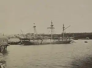 Many pictures purporting to be "the" Hougoumont are in fact of a later steel four-masted barque named Hougomont, 2428 tons, built at Greenock in 1897, and hulked at Stenhouse Bay in South Australia in 1932.[2]