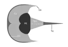 H. yueya was redescribed and replaced under its own genus, Houia, in 2015, being reinterpreted as a basal ("primitive") dekatriatan possessing both horseshoe crab and eurypterid-like features (e.g. crescentic carapace for the former, and metastoma for the latter). Unlike most of dekatriatans like eurypterids and chasmataspidids, the metastoma (ventral plate in front of opisthosoma) of Houia is unusually enlarged, only being comparable by some mycteropoid eurypterids, and may have acted to crush more fortified prey.[1] In 2021, a new species of Houia, H. guangxiensis, was described. Its species name derivates from the Chinese province in which it was discovered, Guangxi.[2]