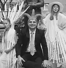 Houmayoun Mahmoudi / Homayoun Mahmoudi born 1966 Tehran, is an Iranian/British Cartoonist, Graphic Artist and Designer. He studied Graphic Design at the University of Tehran and graduated in Animation from the Tarbiat Modares University. Skilled in his own style of Minimal Cartoon, he has his own technique of working on sandpapers. Mahmoudi is married to Nooshin Moradi Fashion Artist, moved to The United Kingdom in 2004 and worked as a freelance Designer and International Artist. He is currently doing PhD research in Art and Design at Manchester Metropolitan University.[1][2] He has won numerous International cartoon contests around the world since 1994 and his Artworks are exhibited in The Modern Art Exhibitions globally. In 1998 Graphis magazine interviewed Houmayoun and published his Artworks[3][4] and between 1999– 2006 he was working with the Ritzenhoff Design company as a member of their artist team.[5]