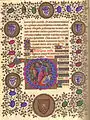 The Hours of Giangaleazzo Visconti (Florence, Biblioteca Nazionale, Banco Rari 397 and Landau-Finaly 22) is a Roman-liturgy, illuminated Book of Hours in Latin, which was commissioned by the ruler of Milan, Gian Galeazzo Visconti, in Italy in the late 14th century.[1] A Book of Hours is a personal prayer book that contained, in part, the Hours of the Virgin, a daily devotional that was popular at the time. This particular Book of Hours was created by two master illuminators, beginning with Giovannino dei Grassi before his death, and completed by Luchino Belbello da Pavia.[2]