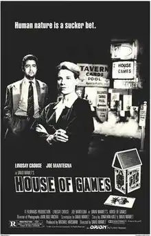 House of Games is a 1987 American neo-noir[2] heist thriller film directed by David Mamet, his directorial debut. He also wrote the screenplay, based on a story he co-wrote with Jonathan Katz. The film's cast includes Lindsay Crouse, Joe Mantegna, Ricky Jay, and J. T. Walsh.