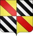 The coat of arms of the family is blazoned as Or a bend gules.[5]