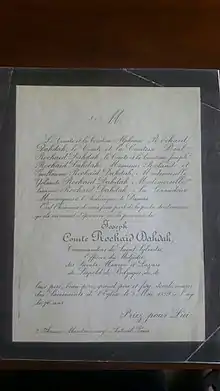 {{cite book}}:|first2=has generic name (help) - de Magny, Ludovic (1890). Armorial des princes, ducs, marquis, barons et comtes romains en France, créés de 1815 à 1890, et des titres pontificaux conférés en France par les papes, souverains du Comtat-Venaissin. Paris: Archives de la noblesse. p. 68.