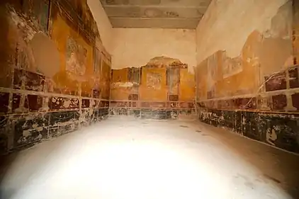 The house originally contained more than twenty painted and mosaic panels, six of which have been relocated to the National Archaeological Museum in Naples, Italy. These panels were selected for their relation to the Iliad, and were the inspiration behind the names Homeric House and Iliadic House. The painted wall panels within the house are examples of the Fourth Pompeiian style.[2]