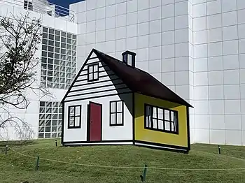 The House series was produced by Roy Lichtenstein in the late 1990s and consists of several large-scale outdoor sculptures and an interior wall piece. The House series includes three distinct works: House I, House II, and House III. Each piece depicts the exterior of a simplified cartoon house, while actively producing an optical illusion.[1] Houses I and III are available for display at the National Gallery of Art Sculpture Garden in Washington, D.C. and the High Museum of Art in Atlanta, GA, respectively.[2][3] No records indicate the current location of House II.