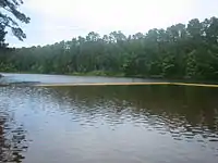 The Four C Mill operated in Houston County during the first two decades of the 20th century. R. M. Keith, agent of the Central Coal and Coke Company in Kansas City, Missouri, began buying virgin timber in the fall of 1899. Lumber to construct the new mill was cut by a small sawmill purchased in early 1901 from J. H. Ratcliff. Keith organized the Louisiana and Texas Lumber Company to operate the Four C. The mill was producing 300,000 board feet of lumber daily by June 1902. Ratcliff Lake, now a United States Department of Interior recreational site, was the millpond for the Four C. The Texas Southeastern Railroad laid track from Lufkin to haul out the lumber. The town of Ratcliff was separated from the Four C by a fence, built to discourage the mill workers from spending their money outside the company town. The 120,000 acres were in time exhausted, and by 1920, the mill shut down.[6]