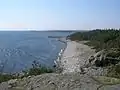The Hove area lies on the southwest part of the island of Tromøy. The Skagerrak lies to the southeast, and to the northwest is Hove Bay (Hovekilen), a shallow protected marine area.[3] There is a strait to the southwest, separating Hove from the islands of Merdø and Gjessøya, and northeast of Hove is Spornes, with a beach that alternates between a sandy beach and a pebble beach depending on the wind and weather.[2] Tromøy Church and the Brekka farm stand further to the northeast. The entire area is characterized by a large moraine,[2] which creates the natural basis for pebble beaches, sandy beaches, and large areas of Aust-Agder's best arable land. The outer part of the Hove area is part of a moraine landscape area with the protected Hove Woods (Hoveskogen), containing windswept Scots pine. The inner part, facing Hove Bay, has extensive camping and beaches for swimming.[3] Hove Camping and the Hove Farm[4] are also located here. It is about 10 kilometers (6.2 mi) from Hove to the town of Arendal.