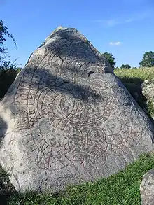 Birka, the oldest town in Sweden, was an international trade post. It has been assumed the royal settlement at Hovgården was established as the king's mean of controlling Birka. However, while Birka was abandoned in the mid-10th century, the royal estate was apparently not as the runestone U 11 from around 1070 which claims to have been carved for the king was erected next to the royal mounds.[2] It was part of Uppsala öd, a network of royal estates supporting the Kings of Sweden.
