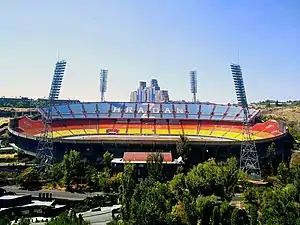 Hrazdan Stadium (Armenian: Հրազդան մարզադաշտ) is a multi-use, all-seater stadium in Yerevan, Armenia, opened in 1970. Being the largest sports venue in Armenia, Hrazdan was mostly used for football matches. It was the home stadium of the Armenian national team until 1999 and has hosted the occasional international game since then. The stadium is able to host 54,208 spectators[2] after the most recent reconstruction in 2008, which converted the stadium into an all-seater one. Before the reconstruction, Hrazdan was able to hold up to 70,000 spectators. It was among the top four stadiums of the Soviet Union by its capacity. The stadium hosted the Armenian Cup finals on many occasions, as well as the opening ceremony of the Pan-Armenian Games in 2003. The USSR national team played two games, against Finland and Greece, in Hrazdan in 1978.