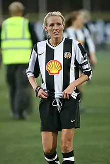 Hrefna Huld Jóhannesdóttir (born 25 October 1980) is an Icelandic former footballer and a former member of the Iceland women's national football team.[2] She spent most of her career with KR and scored 179 goals in 220 Úrvalsdeild kvenna matches. In 2003 she won the Úrvalsdeild kvenna golden boot after scoring 21 goals in 14 matches.[2][3] She played college football for Auburn Montgomery[4] and was named to the 2004 NAIA Women's Soccer All-American second team.[5] Hrefna retired from football in 2012 due to mental health issues.[2][3][6]