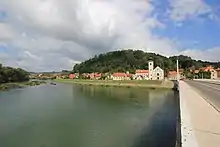 During World War II, the town was occupied by Axis troops and was included into the Pavelić's Independent State of Croatia (NDH). The fascist Ustashe regime committed the Genocide of the Serbs and the Holocaust. Between 29 and 37 July 1941, 280 Serbs were killed and thrown into pits near Kostajnica.[11] The town was bombed by American forces on May 30, 1944.