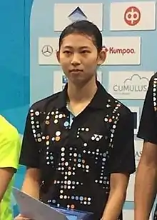 Hu Ling-fang (Chinese: 胡綾芳; pinyin: Hú Língfāng; born 6 April 1998) is a Taiwanese badminton player.[1] In 2016, she was selected to compete at the 2016 Uber Cup in Kunshan, China. She played as a third women's singles and finally the Taiwanese team beat the Mauritanian with the score 5-0.[2] She won her first senior international title at the 2017 Finnish Open in the mixed doubles event partnered with Tseng Min-hao.[3] Hu also joined the national team participating at the 2018 Asian Games.[4]