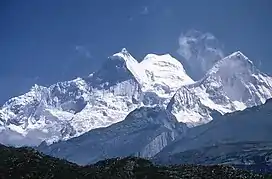 It is a snow-capped mountain with four peaks arranged in the form of a fireplace, the tallest of which is 6,395 m. The four peaks are each over 6,000 m, and are:[6]