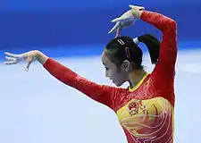 Huang Qiushuang (Chinese: 黄秋爽; pinyin: Huáng Qiūshuăng), born on 28 May 1992, is a Chinese gymnast.[1] She is an individual all-arounder known for her clean form and artistry.[2] She was a part of the Chinese team for the London 2012 Olympic Games.[3]
