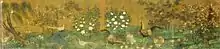 Huang Quan was born in 903, when the Tang empire had irretrievably collapsed into warlordism and civil strife. Around this time, many painters took refuge in Chengdu, Huang Quan's hometown and the capital of the relatively peaceful Xichuan Circuit, then controlled by the warlord Wang Jian. (Wang Jian founded the Former Shu empire in 907 after the Tang dynasty ended.) When Huang Quan was 12, he began his study of painting with the bird-and-flower painter Diao Guangyin (刁光胤), who had arrived in Chengdu from the Tang capital Chang'an in 903. Whereas Diao's other student Kong Song (孔嵩) never progressed beyond faithful reproduction of Diao's technique, Huang Quan sought to develop his own.[1] He studied the water paintings of Sun Wei (孫位), another refugee from Chang'an, as well as the landscape paintings of Li Sheng (李昇), a leading local painter. By combining the strengths of all his teachers Huang was able to create a superior style.[2]