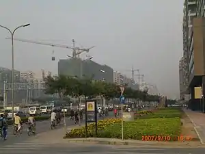 Baorunyuan (宝润苑), built on North Huashi Street in 1998, was one of the first luxury apartment high-rises in Beijing with duplex suites and underground parking.[6] In 1999, Shantou-based developer Zhang Zhangsun built the upscale Fuguiyuan (富贵园) condominium complex in East Huashi, which became one of the top ten best-selling real estate projects in Beijing.[7] He followed suit in West Huashi, with the vast Glory Mall and sprawling Glory City (国瑞城) condominiums in 2003.[7] Other high-rise residential complexes in Huashi include Flower Market Zaoyuan (花市枣苑) and Xinjing Homeland (新景花园). By 2007 only a few historically significant traditional buildings remain standing amidst the forest of mid- and high-rise apartment towers in Huashi.