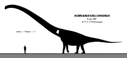 Despite the fragmentary nature of the fossil material, Hudiesaurus is believed to have been very large, even for a sauropod, given the considerable length of the vertebral centrum of 55 centimetres (22 in). Its body length is estimated at 20–30 metres (66–98 ft).[4][1] In 2016, Gregory S. Paul estimated its length at 25 metres (82 ft) and its weight at 25 tonnes (28 short tons).[5] In 2021, Upchurch et al. suggested that the vertebra may be cervical instead of thoracic, suggesting that the animal would be at 32 metres (105 ft) and 55 tonnes (61 short tons).[3]