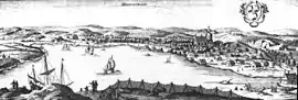 It has been damaged by fires some 10 times, the most severe when it was burnt by the Russians during the Russian Pillage of 1719-1721 in 1721, whereafter only the church remained. The current street structure was applied in 1792 as part of the reconstruction necessitated by another fire.