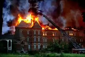 Then, on May 31, 2007, lightning struck the sprawling south wing, which held male housing, causing one of the most serious fires in Dutchess County's history.[24][25] It is unclear whether that portion of the building can be effectively restored after such severe damage. The Administration building was again hit by fire on the morning on April 27, 2018.