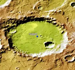 Huggins is an impact crater in the Eridania quadrangle of Mars, located at 49.0°S latitude and 155.8°E longitude. It is 83 km in diameter. It was named after British astronomer William Huggins, and the name was approved in 1973 by the International Astronomical Union (IAU) Working Group for Planetary System Nomenclature (WGPSN).[1]