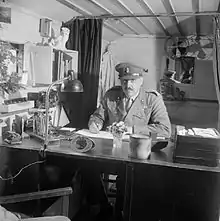 ![]() Brigadier Glyn Hughes at Bergen-Belsen, 1945. | |