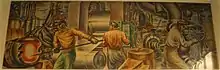 Hugh Mesibov was born in Philadelphia, Pennsylvania in 1916. He began his studies at the Samuel S. Fleisher Art Memorial School, then at the Pennsylvania Academy of Fine Arts and at the Barnes Foundation. During the 1930s, he received funding from the Works Progress Administration.[3] As a Pennsylvania artist, he produced paintings, murals and prints depicting Depression-Era themes of work and society. He also experimented with printmaking, which led to his co-invention (with Michael Gallagher and Dox Thrash) of the Carborundum printmaking process.[4][5] Mesibov also invented the Color Carborundum Printmaking process.[6] One of Mesibov's notable commissions by the United States Department of the Treasury Section of Painting and Sculpture (later known as the Section of Fine Arts) was to paint the mural Steel Industry in the post office in Hubbard, Ohio.[7]