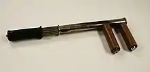 The 'Thomas's wrench' was designed for reducing fractures.[11] and correct clubfeet. The club foot would be rolled between the two shorter cylinders to forcibly correct it.[15]