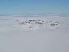 ![]() Hughes Bluff, as viewed from the south east. David Glacier is in the far distance, flowing from left to right on this photo. | |