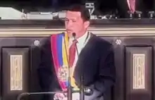 Chávez gave himself up to the government and appeared on television, in uniform, to call on the remaining coup members to lay down their arms.[114] Many viewers noted that Chávez in his speech remarked that they had failed only "por ahora" (for now).[53][115][116] Venezuelans, particularly poor ones, began seeing him as someone who stood up against government corruption and kleptocracy.[117][118][119] The coup "flopped militarily—and dozens died—but made him a media star", noted Rory Carroll of The Guardian.[120]