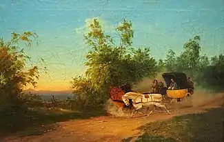 In addition to the school, he maintained his own private art studio where he specialized in landscapes with peasants, soldiers and animals. In 1864, forty-two of his pencil drawings, depicting the ancient ruins and forests of Slavonia, were displayed at a major exhibition in Zagreb.[2]