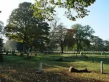 5 acres (2.0 ha) of land had been set aside by the Hull General Cemetery for use of the board of health (1859), and in 1862 the board acquired the land, opening a new cemetery adjacent west of the old General Cemetery, known as the Western Cemetery.[5][17][map 5] A chapel was later added for Anglican rites,[map 6] and a third in 1863 for the use of non-conformists.[map 7][8][note 3] By 1892 the Western Cemetery occupied 27.5 acres (11.1 ha).[34]