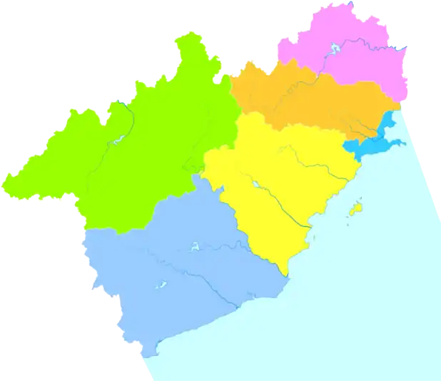 | 1 | Longgang District | 龙港区 | Lónggǎng Qū | 170,000 | 138 | 1,232 |
