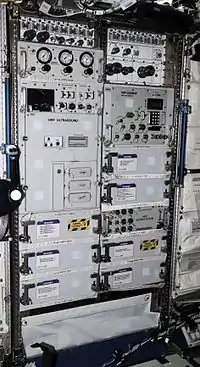 The International Space Station (ISS) moderate temperature cooling loop is extended into the HRF to keep the rack at ambient temperature. The Avionics Air Assembly (AAA), which interfaces with the moderate temperature cooling loop, extracts heat from the air in the rack. Each payload can use up to 2000 W of cooling power. HRF-1 is connected to the ISS video services and Ethernet, which allow the ISS and ground operations crews to control payloads. The rack has front-panel access ports for the laptop, vacuum system, and nitrogen delivery system.