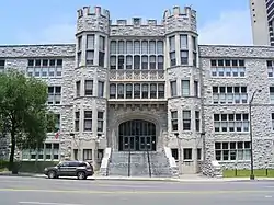 In 1875, Fogg High School became the second public school in Nashville. It was built on the same property as Hume High School, facing Broad Street. In 1912, the two merged into Hume-Fogg at the present site at 700 Broadway, a Gothic Revival building.[3] The building consists of five floors including a basement, which has several tunnels leading to various locations in downtown Nashville. However, they are currently boarded off and inaccessible. In 1942, Hume-Fogg was recast as a Technical and Vocational School.