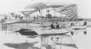 The biplane was launched on 3 April 1909 but it turned turtle and sank due to an accident.[1] Recovered and tested again, The Times reported in April 1909 that a further trial was abandoned when the gearing between the engine and the propellers failed.[2] In May 1909 it did manage to skim the water at speed of 12 knots but failed to overcome the drag in the design and failed to fly.[1]