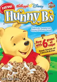 Hunny B's was a Winnie the Pooh-themed breakfast cereal made by Kellogg's under license from Disney, described by the company as a "naturally sweetened honey-graham cereal." The individual cereal pieces were in the shape of the letter "B", while the UK version also contained biscuit pieces in the shapes of honey pots, Pooh's head and bees (for a time, biscuits in the shape of Piglet's head were also included).[1]