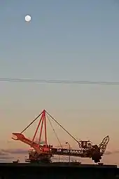 West of Maitland the line is formed of two tracks, with three in places, with the lines being shared with passenger trains operated by NSW TrainLink. East of Maitland the line is formed of four tracks with the southern pair exclusively for the use of coal trains with an underpass at Hanbury west of Waratah allowing trains to reach Port Waratah without having to interface with the northern pair of tracks. In 2006 the Sandgate Flyover was opened to similarly allow trains to access Kooragang Island.[6] As at December 2012 there were 50 to 60 coal trains per day up to 1.5 kilometres in length.[7]
